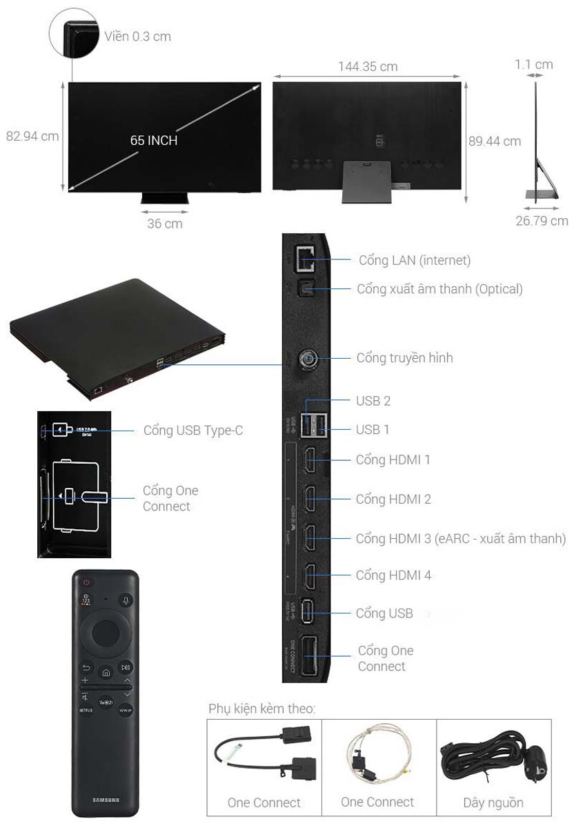 QA65S95DAKXXV được trang bị 4 cổng HDMI 2.1, 3 cổng USB, cổng LAN, và hỗ trợ eARC, cho phép kết nối dễ dàng với các thiết bị ngoại vi như soundbar, máy chơi game, và đầu phát Blu-ray. Khả năng kết nối đa dạng giúp người dùng tận dụng tối đa các thiết bị giải trí hiện có.