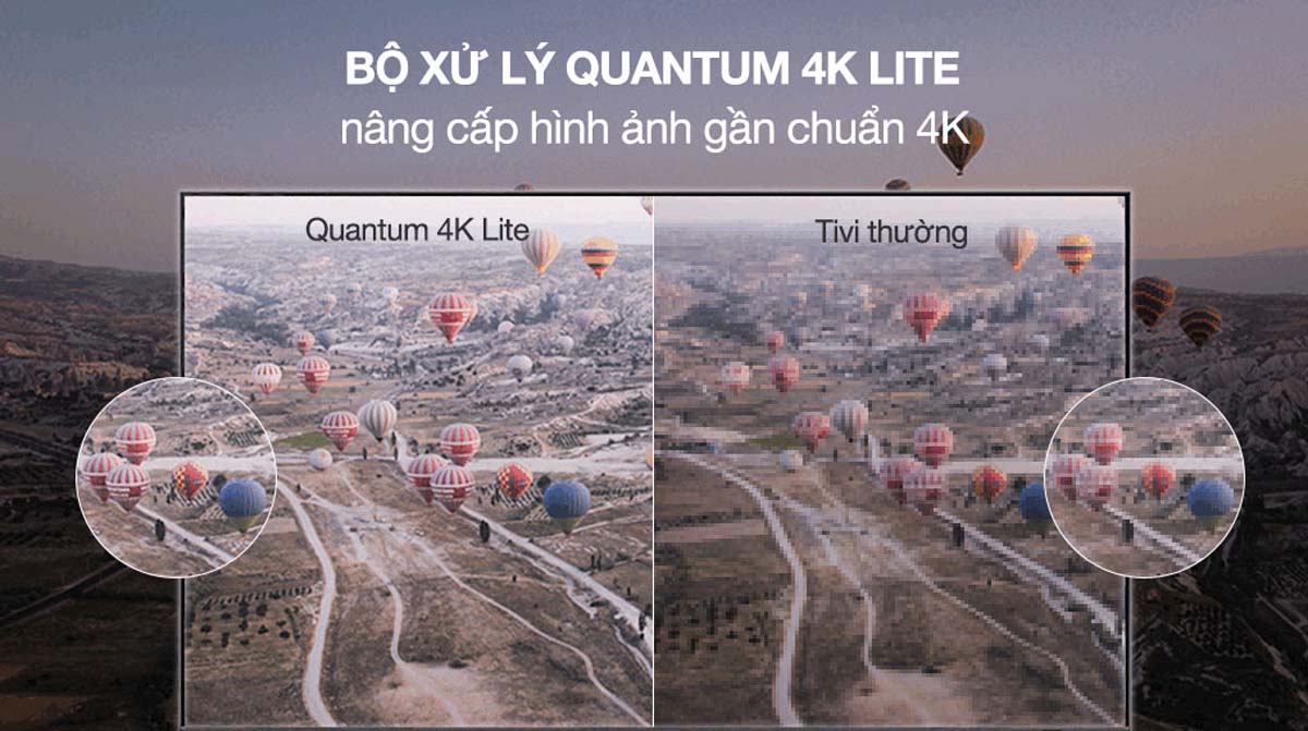 QA75Q60DAKXXV được trang bị bộ xử lý Quantum Processor Lite 4K, giúp nâng cấp nội dung không phải 4K lên gần chuẩn 4K bằng trí tuệ nhân tạo. Nhờ đó, mọi hình ảnh hiển thị đều sắc nét, giàu chi tiết và có độ tương phản tốt hơn.