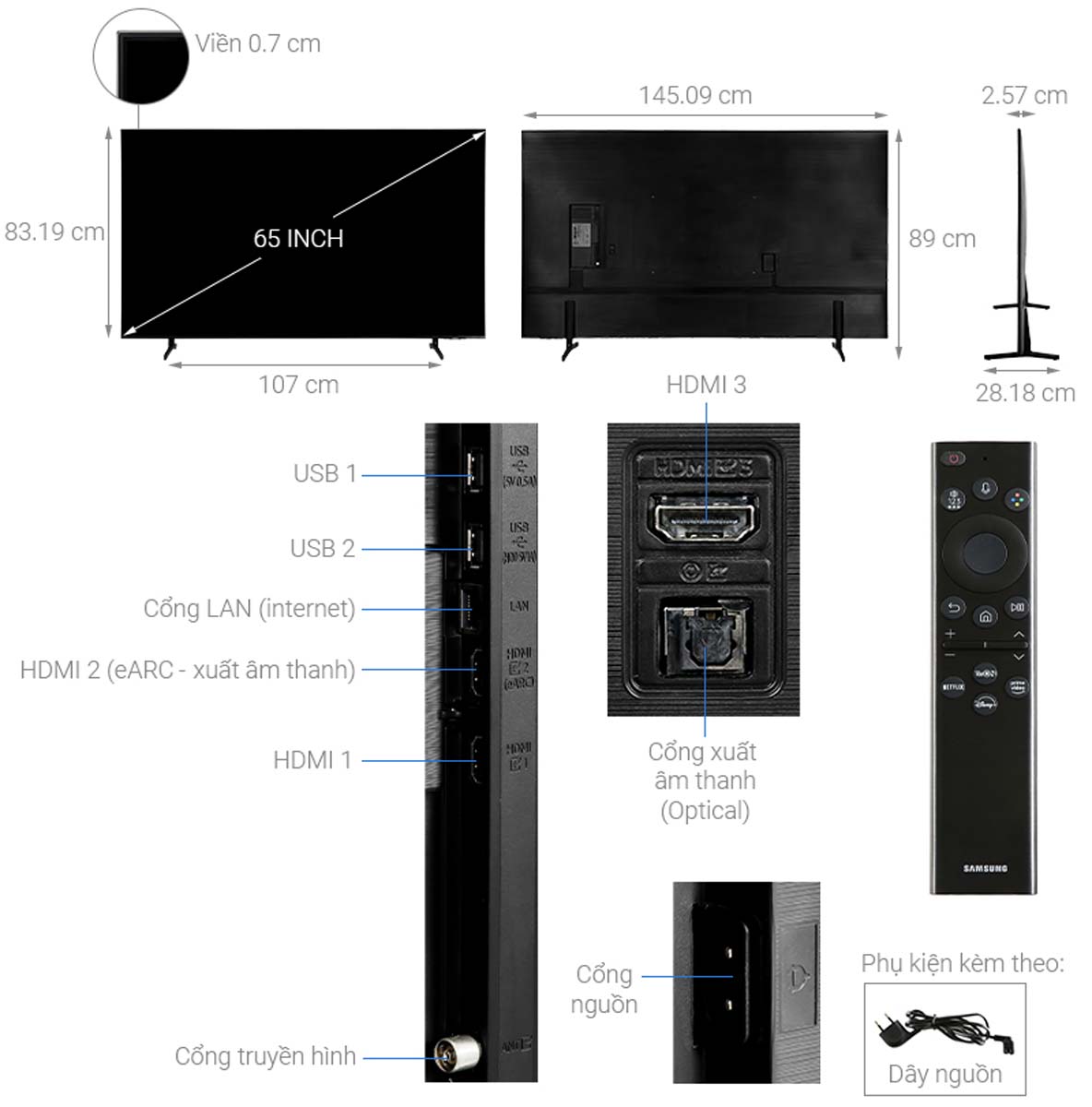 | Kích thước có chân đế | 1450.9 x 869.6 x 281.8 mm (WxHxD) |