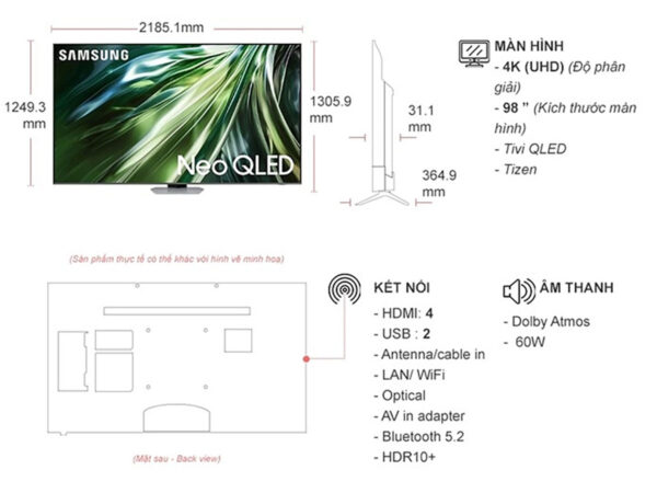 Tivi Samsung QA98QN90DAKXXV 98 Inch 4K Neo QLED Smart