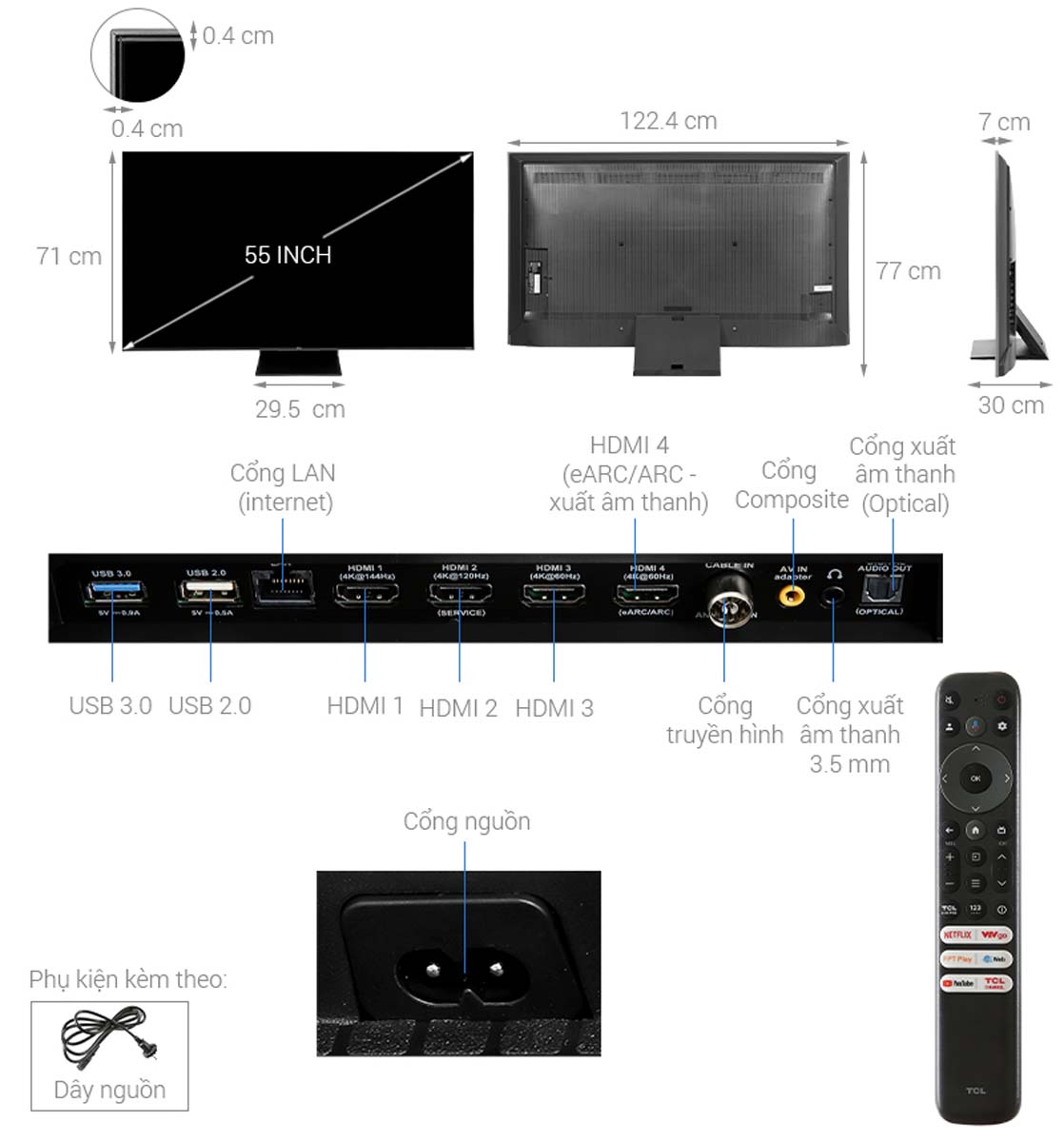 Thông số kĩ thuật Google Tivi TCL 55C755 QD-Mini LED 55 inch 4K