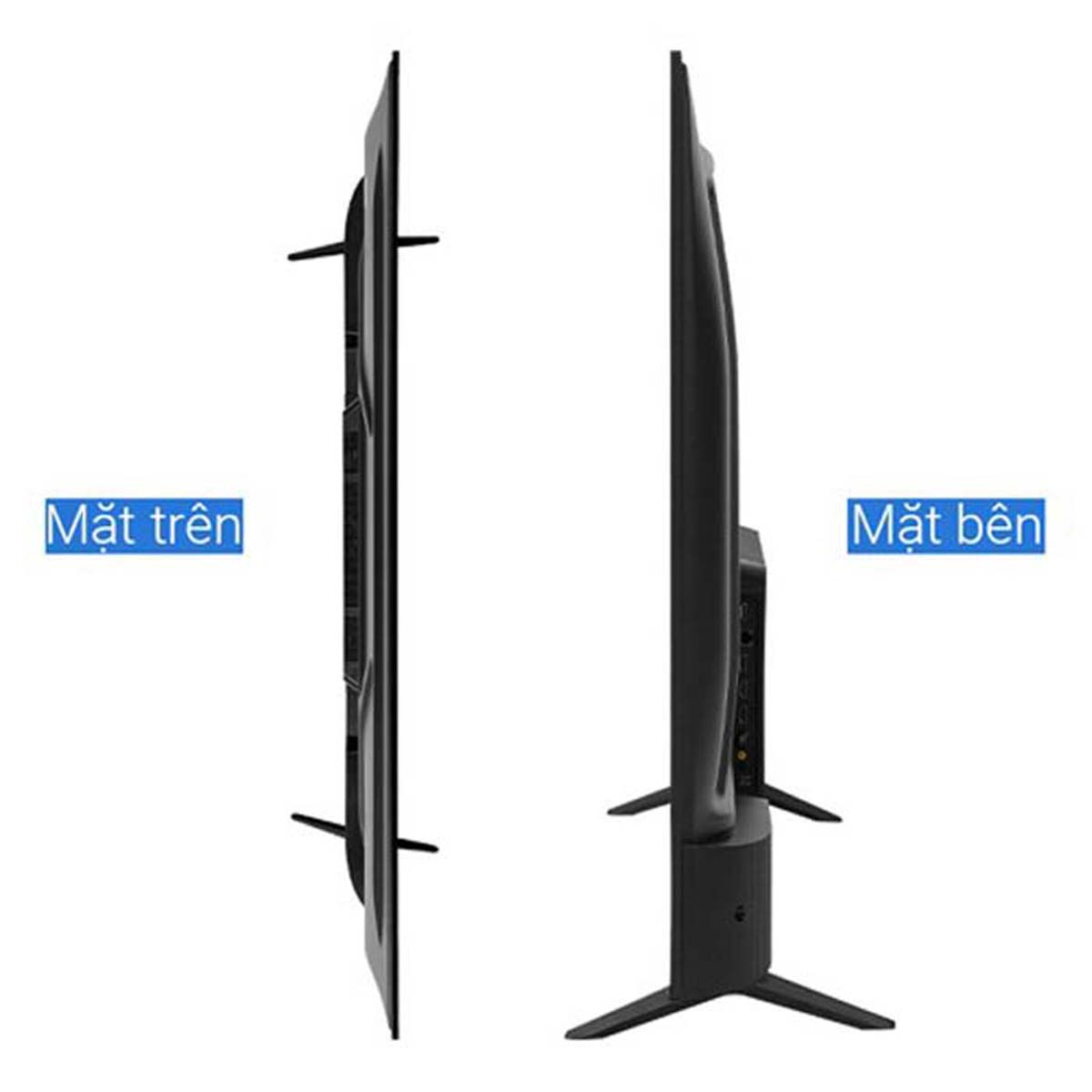 - Chân đế: Chân đế chữ V úp ngược, cân bằng ở hai bên thân dưới tivi, nâng đỡ tivi vững vàng và chắc chắn.