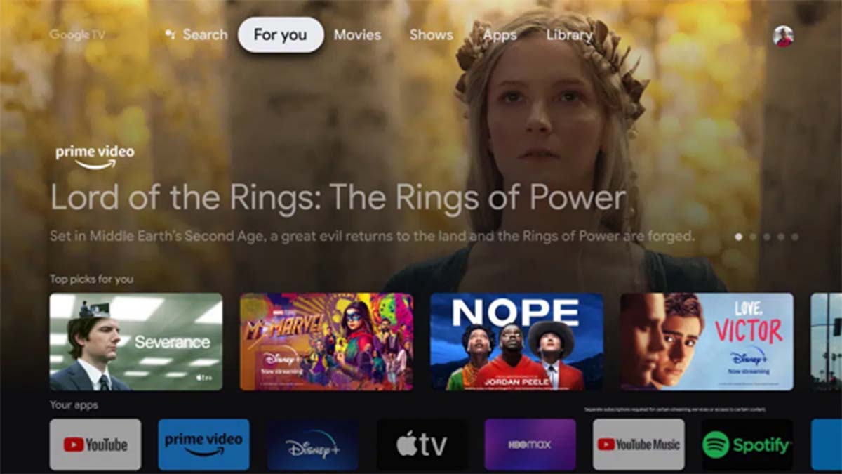 - Hệ điều hành Google TV tích hợp giúp người dùng dễ dàng truy cập vào các ứng dụng giải trí, khám phá nội dung theo sở thích cá nhân và sử dụng trợ lý ảo Google Assistant bằng giọng nói.