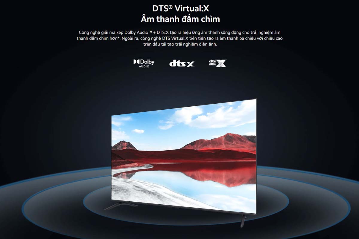 Tivi XIAOMI A Pro 50 2025 hỗ trợ công nghệ âm thanh Dolby Audio và DTS:X cùng DTS Virtual:X tạo nên không gian âm thanh ba chiều sống động. Âm thanh được khuếch đại cả chiều ngang và chiều cao, mang lại cảm giác như bạn đang ngồi giữa rạp phim. XIAOMI A Pro 50 2025 mang đến trải nghiệm nghe nhìn đỉnh cao ngay tại phòng khách của bạn.