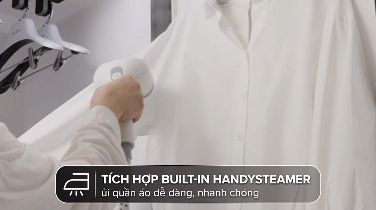 Tích hợp bàn ủi hơi nước áp suất cao với 3 mức tùy chọn, cho phép loại bỏ nhanh chóng các nếp nhăn trên quần áo, giúp trang phục luôn phẳng phiu và gọn gàng.
