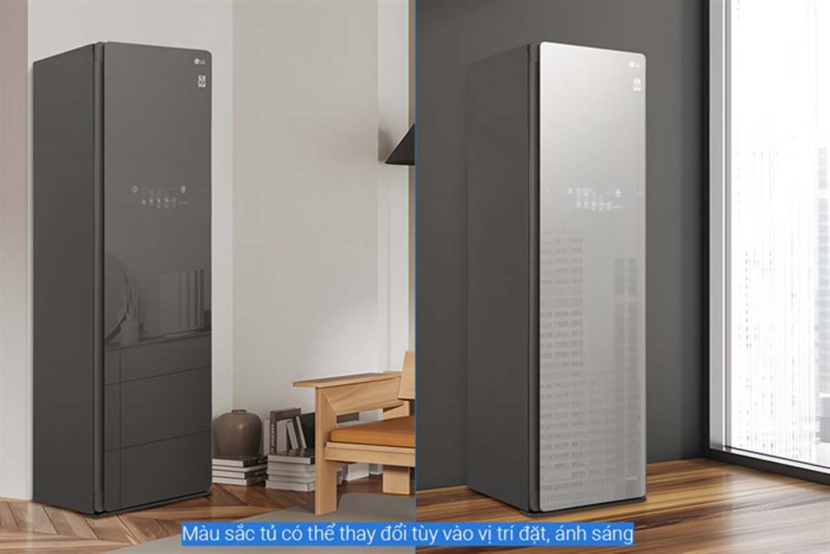 Mặt trước của LG Styler S5MB được trang bị gương soi toàn thân, không chỉ tăng tính thẩm mỹ cho không gian mà còn tiện lợi cho việc kiểm tra trang phục sau khi chăm sóc.