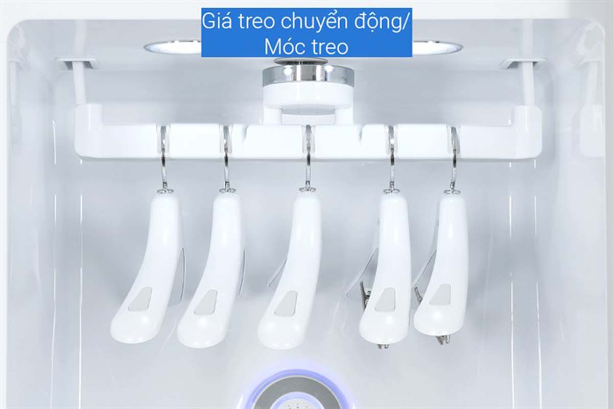 Móc treo di chuyển với tốc độ lên đến 160 vòng/phút, giúp rũ bỏ bụi bẩn và nếp nhăn trên quần áo một cách hiệu quả, đồng thời tạo không gian để hơi nước tiếp xúc đều với sợi vải.