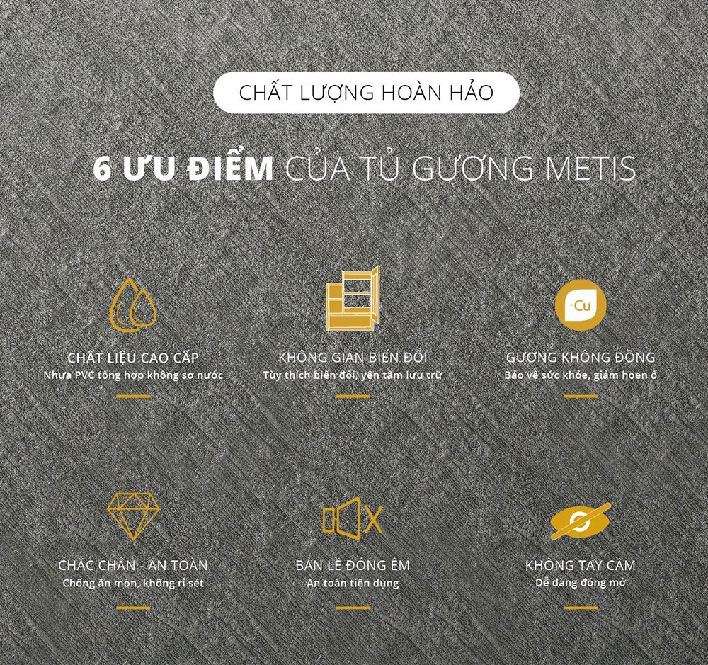 - Chất liệu ván nhựa PVC bền gấp 5 lần ván gỗ ép được sử dụng toàn bộ trên thân tủ giúp chống cong vênh, biến dạng trong suốt quá trình sử dụng