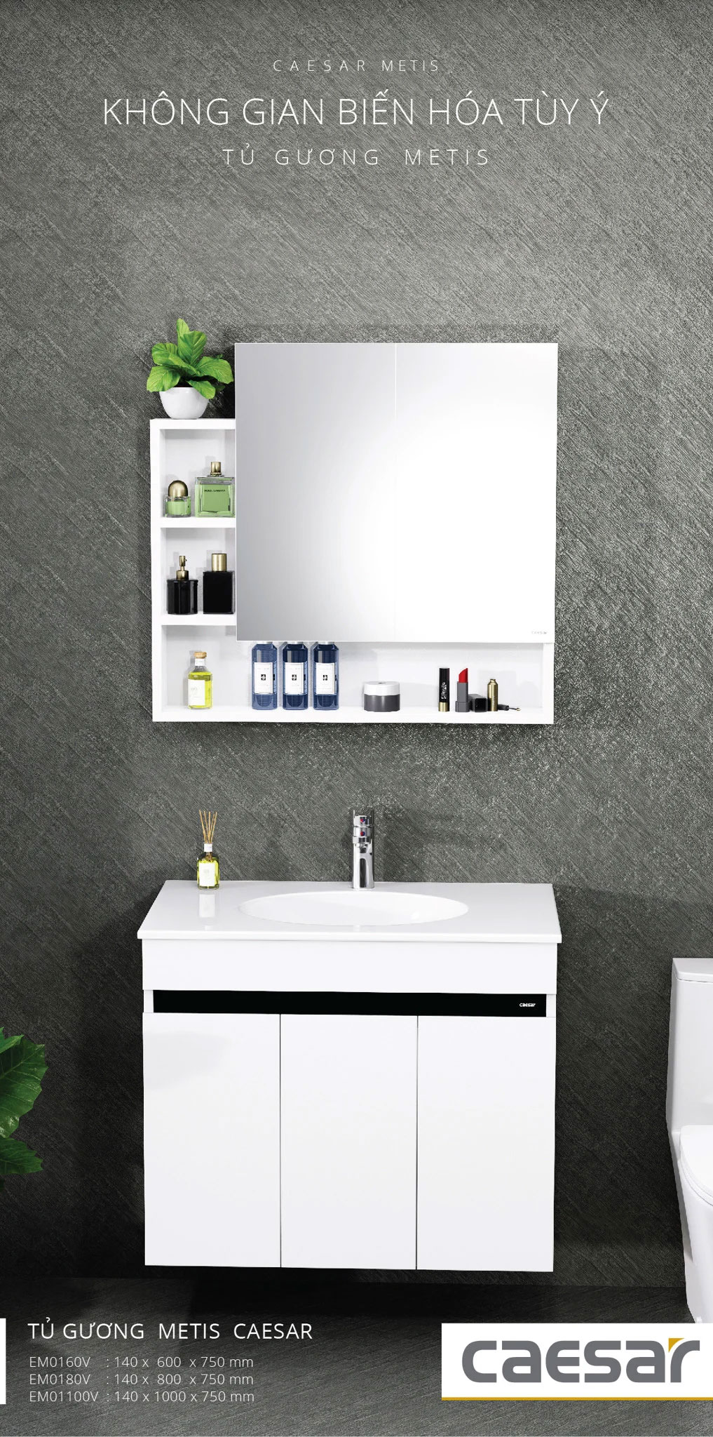 Thông số kĩ thuật Tủ gương CAESAR EM0180V treo tường