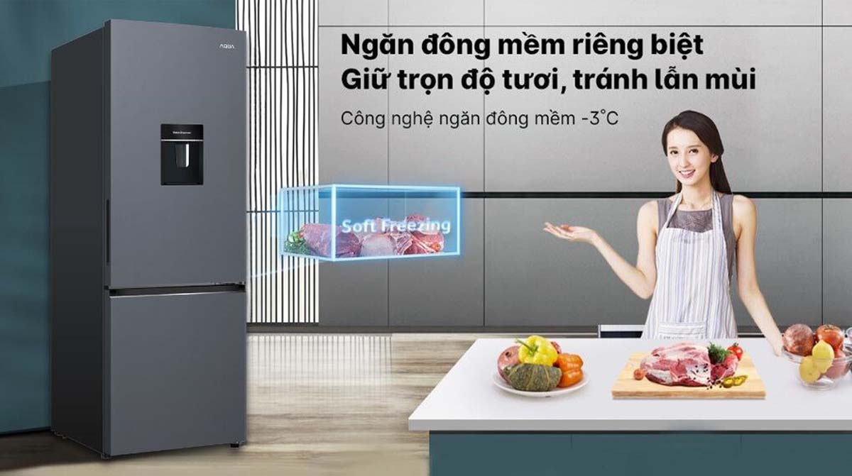 AQR-B360MA(WSL) nổi bật với ngăn đông mềm Magic Zone duy trì nhiệt độ ổn định ở mức -3°C. Ngăn này giúp bảo quản thực phẩm tươi sống như thịt, cá mà không cần rã đông trước khi chế biến, tiết kiệm thời gian và giữ nguyên dưỡng chất.