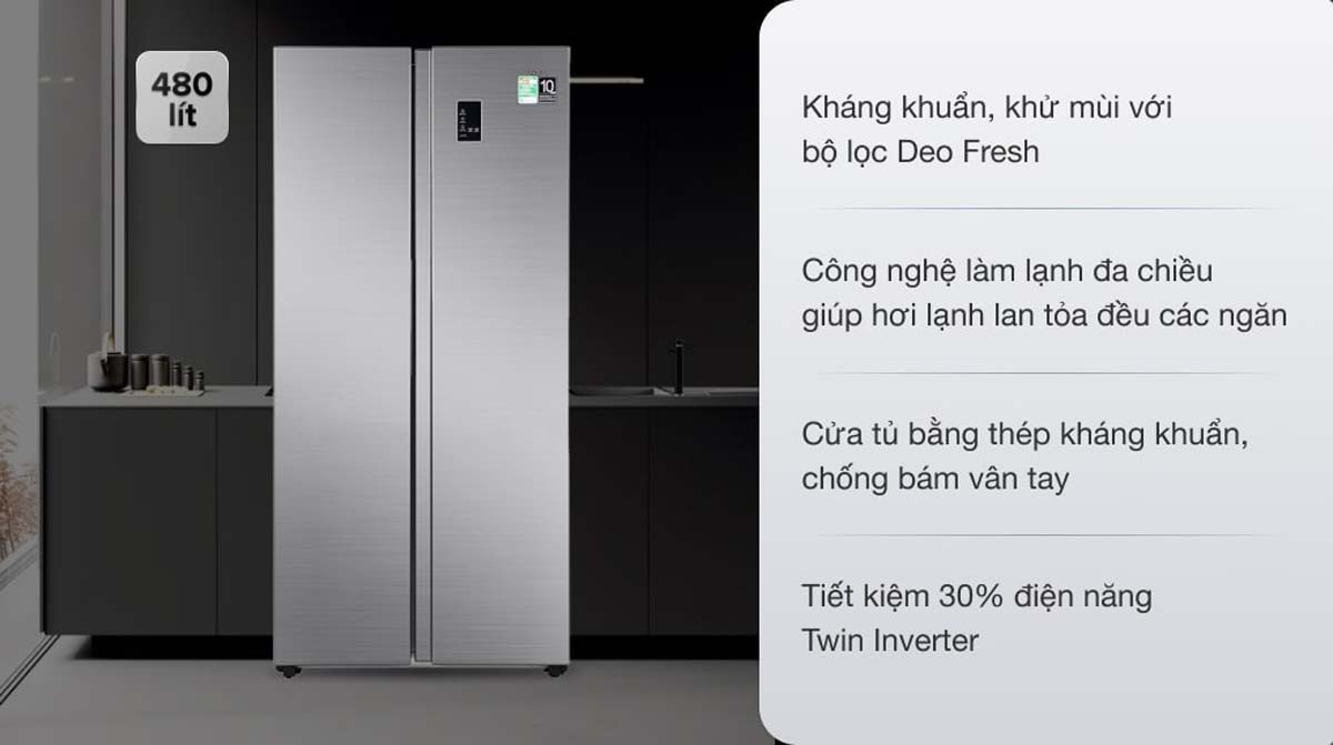 Dung tích lớn 480 lít phù hợp cho gia đình đông người