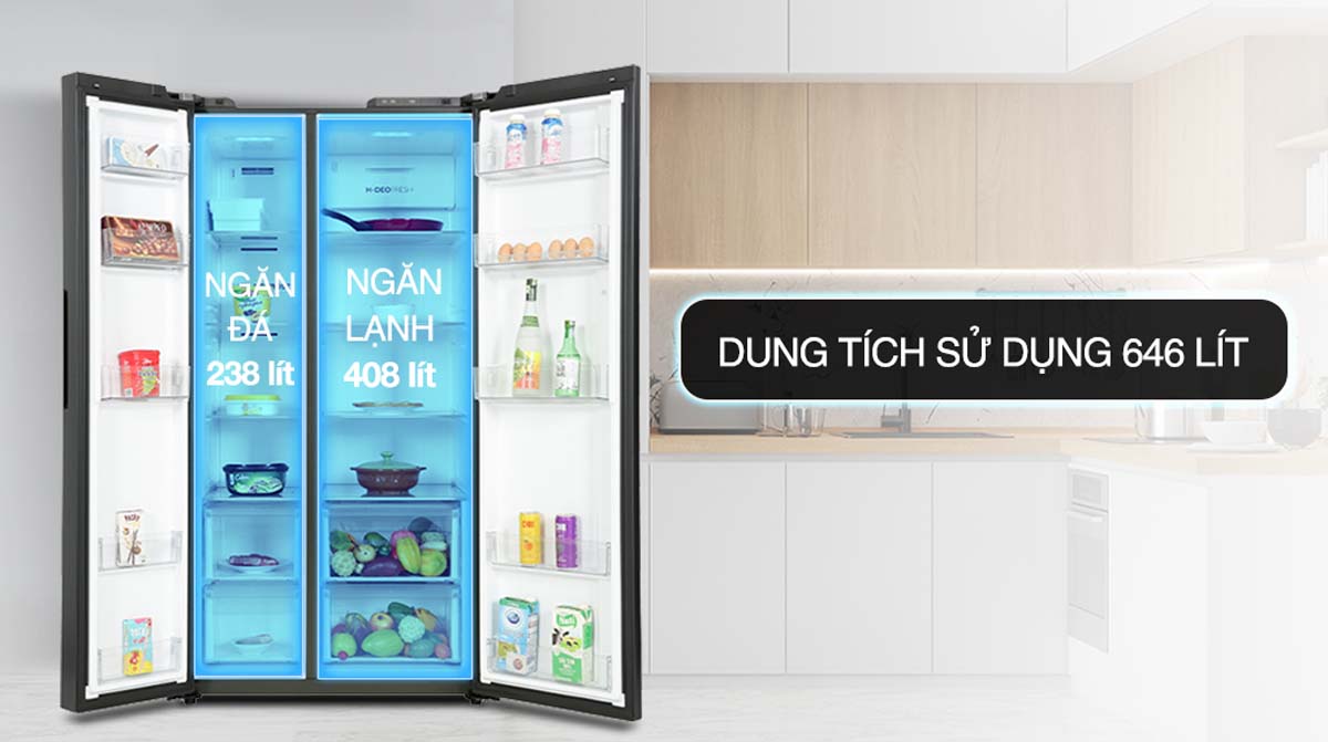 Dung tích lớn 646 lít phù hợp cho gia đình đông người