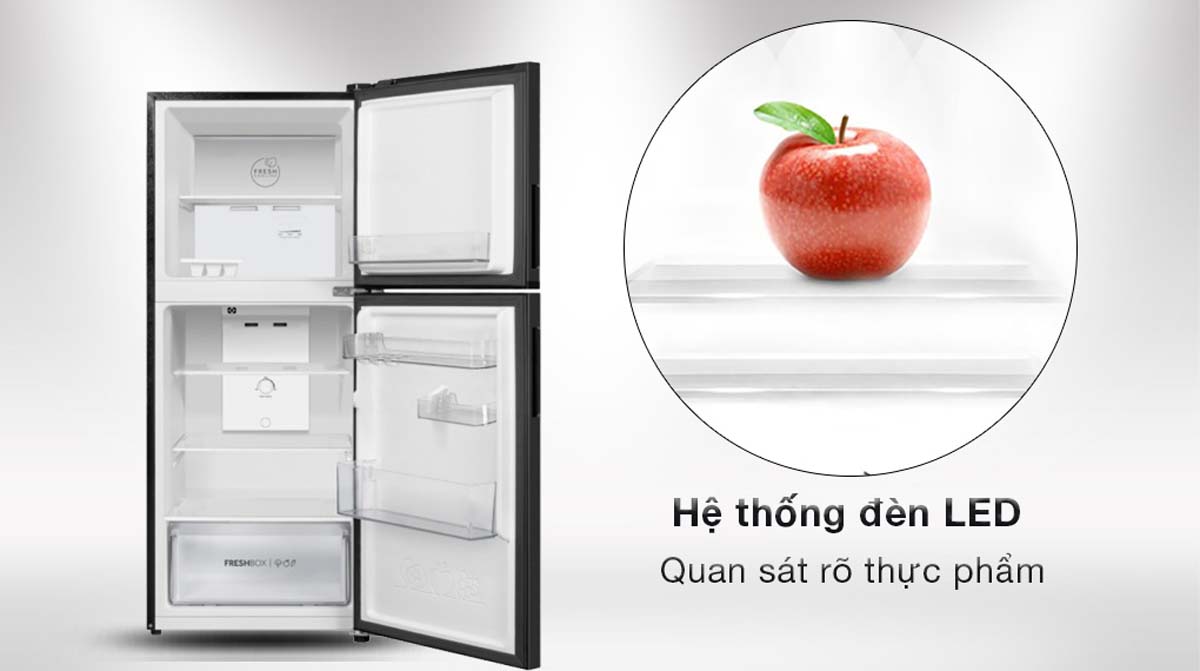 Tủ lạnh được trang bị đèn LED chiếu sáng giúp người dùng dễ dàng quan sát thực phẩm bên trong, kể cả vào ban đêm. Đèn LED có khả năng tiết kiệm điện và tỏa ít nhiệt hơn đèn sợi đốt, góp phần giữ cho nhiệt độ trong tủ luôn ổn định.