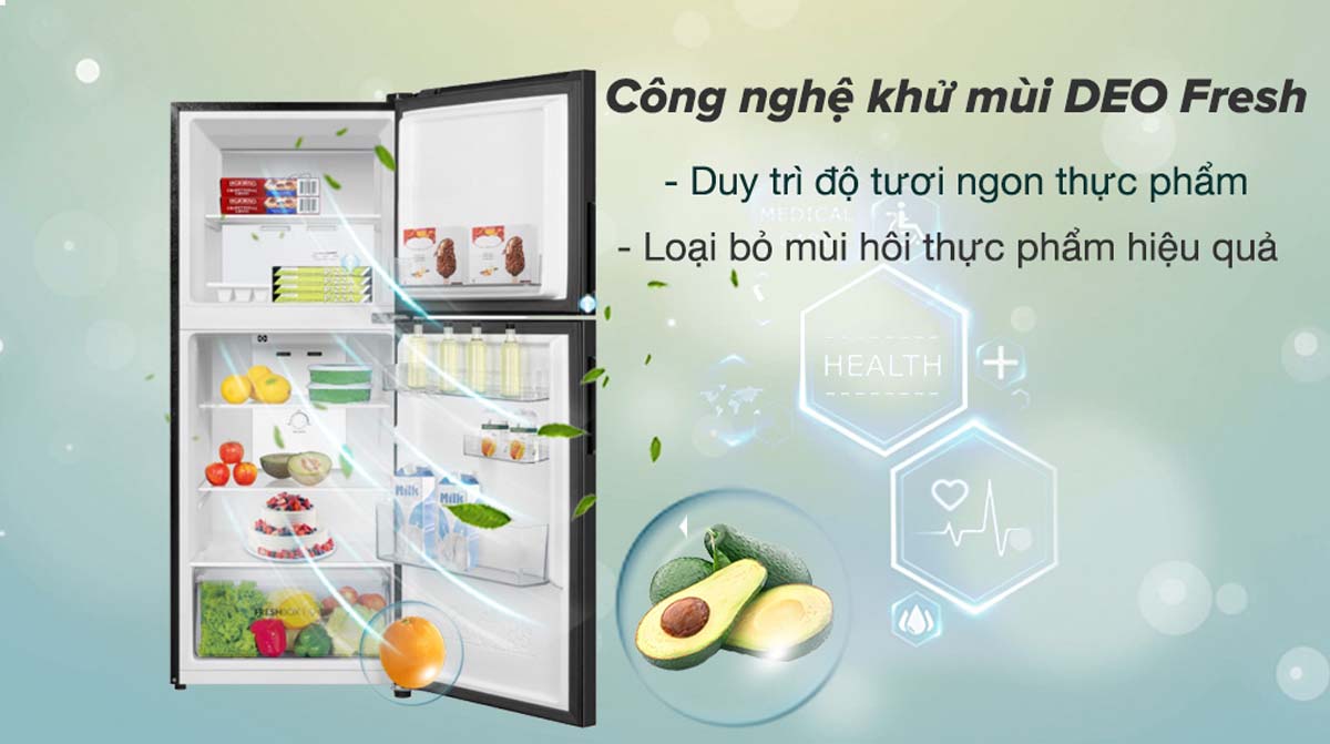 AQR-T220FA(FB) tích hợp công nghệ DEO Fresh sử dụng phân tử Nano bạc Ag+, giúp loại bỏ mùi hôi khó chịu và hạn chế sự phát triển của vi khuẩn bên trong tủ. Nhờ đó, không khí bên trong luôn sạch sẽ, thực phẩm không bị lẫn mùi và giữ được độ tươi lâu hơn, đảm bảo an toàn vệ sinh cho người sử dụng.