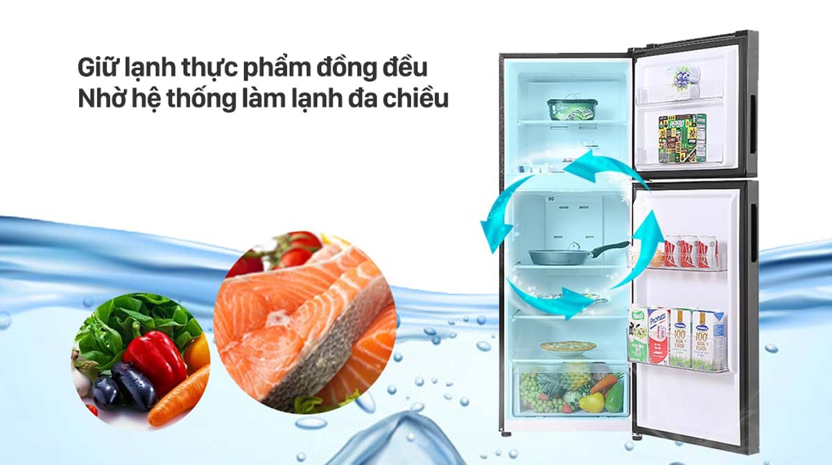 Hệ thống làm lạnh đa chiều của AQR-T239FA(HB) đảm bảo luồng khí lạnh phân bố đều khắp các ngăn tủ, giúp thực phẩm được làm lạnh nhanh chóng và đồng đều. Điều này không chỉ giữ cho thực phẩm tươi ngon mà còn ngăn chặn tình trạng đóng tuyết, giúp tủ hoạt động hiệu quả và tiết kiệm năng lượng.Tu Lanh Aqua AQR T239FAHB Inverter 212 Lit 1 1