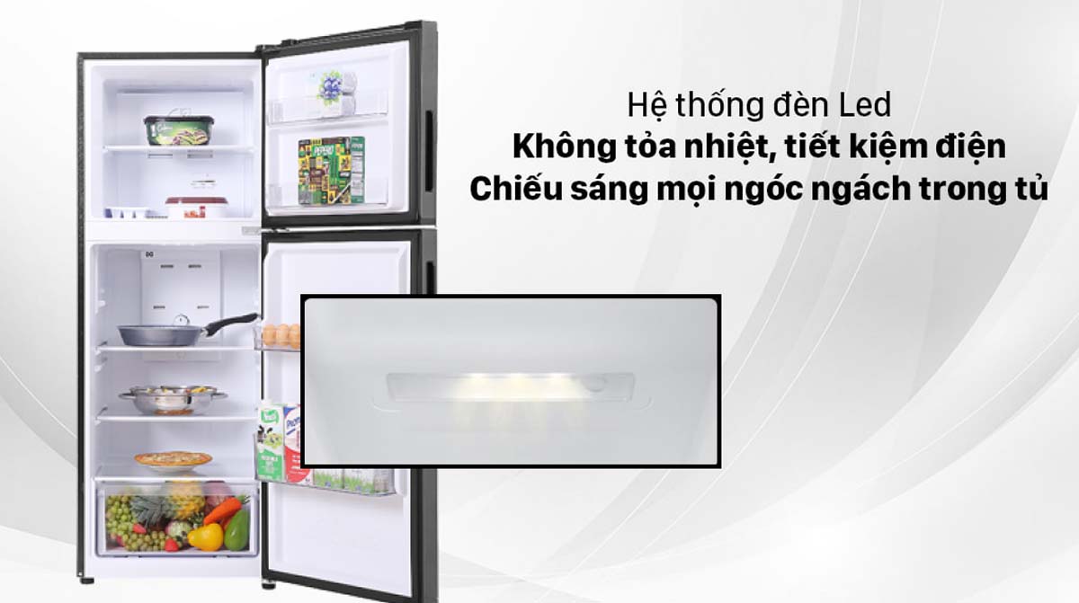 Tủ lạnh Aqua AQR-T239FA(HB) sử dụng đèn LED chiếu sáng bên trong, không chỉ tiết kiệm điện năng mà còn ít tỏa nhiệt, giữ cho nhiệt độ bên trong tủ ổn định, góp phần bảo quản thực phẩm tốt hơn. Ánh sáng LED giúp người dùng dễ dàng quan sát và lấy thực phẩm, đặc biệt vào ban đêm hoặc trong điều kiện ánh sáng yếu.Tu Lanh Aqua AQR T239FAHB Inverter 212 Lit 2