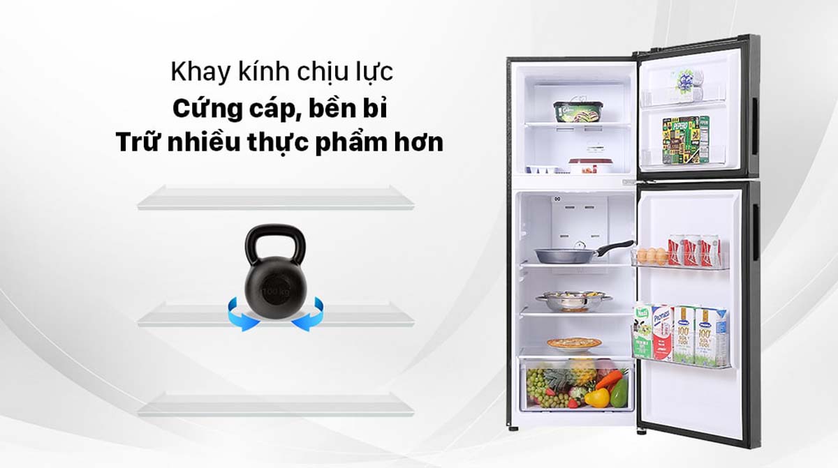 Các khay trong tủ lạnh Aqua AQR-T239FA(HB) được làm từ kính chịu lực, có khả năng chịu được trọng lượng lớn mà không lo nứt vỡ. Điều này giúp người dùng yên tâm khi lưu trữ các loại thực phẩm nặng hoặc số lượng lớn, đồng thời dễ dàng vệ sinh khi cần thiết.Tu Lanh Aqua AQR T239FAHB Inverter 212 Lit 4