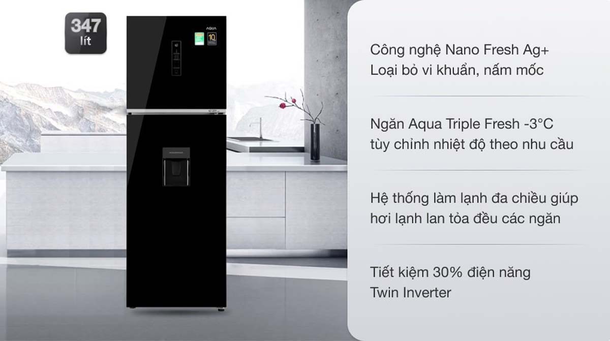 Tủ Lạnh Aqua AQR-T389FA(WGB) Inverter 344 Lít