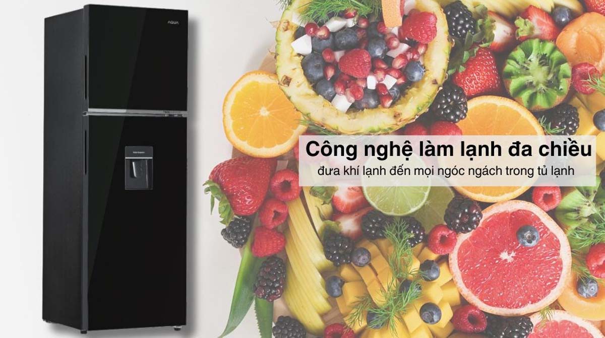 Hệ thống làm lạnh đa chiều 360 độ của AQR-T410FA(WGB) đảm bảo luồng khí lạnh phân bố đều khắp các ngăn tủ, giúp thực phẩm được làm lạnh nhanh chóng và đồng đều. Điều này không chỉ giữ cho thực phẩm tươi ngon mà còn ngăn chặn tình trạng đóng tuyết, giúp tủ hoạt động hiệu quả và tiết kiệm năng lượng.