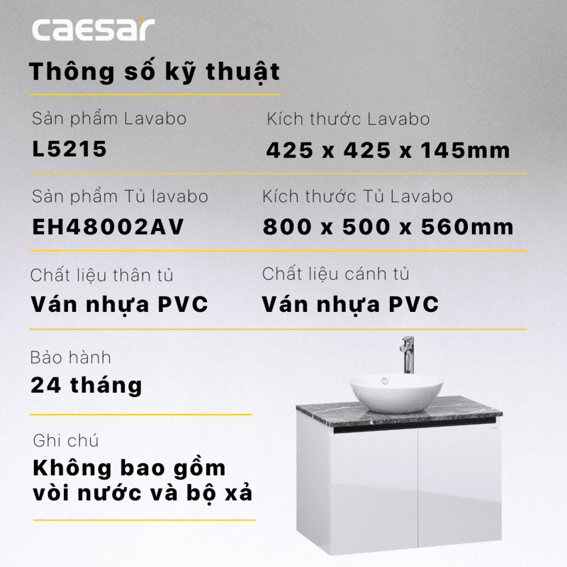 Thông số kĩ thuật Tủ lavabo CAESAR L5215 EH48002AV