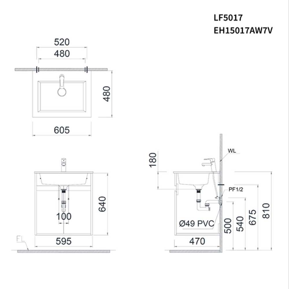Bản vẽ kĩ thuật Tủ lavabo CAESAR LF5017 EH15017AW7V