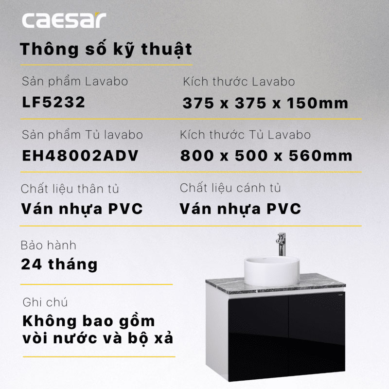 Thông số kĩ thuật Tủ chậu lavabo CAESAR LF5232 EH48002ADV
