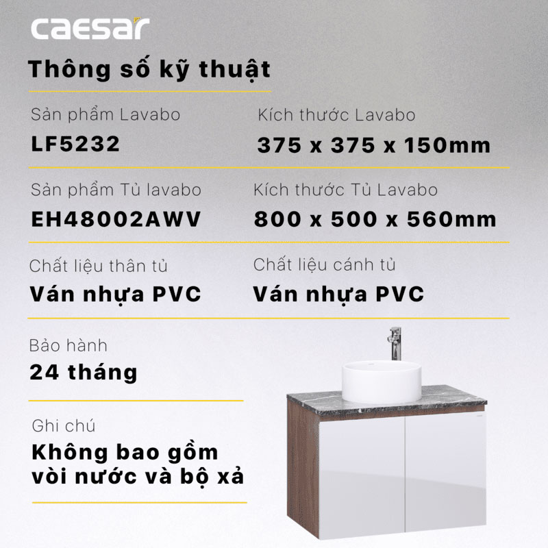 Thông số kĩ thuật Tủ chậu lavabo CAESAR LF5232 EH48002AWV