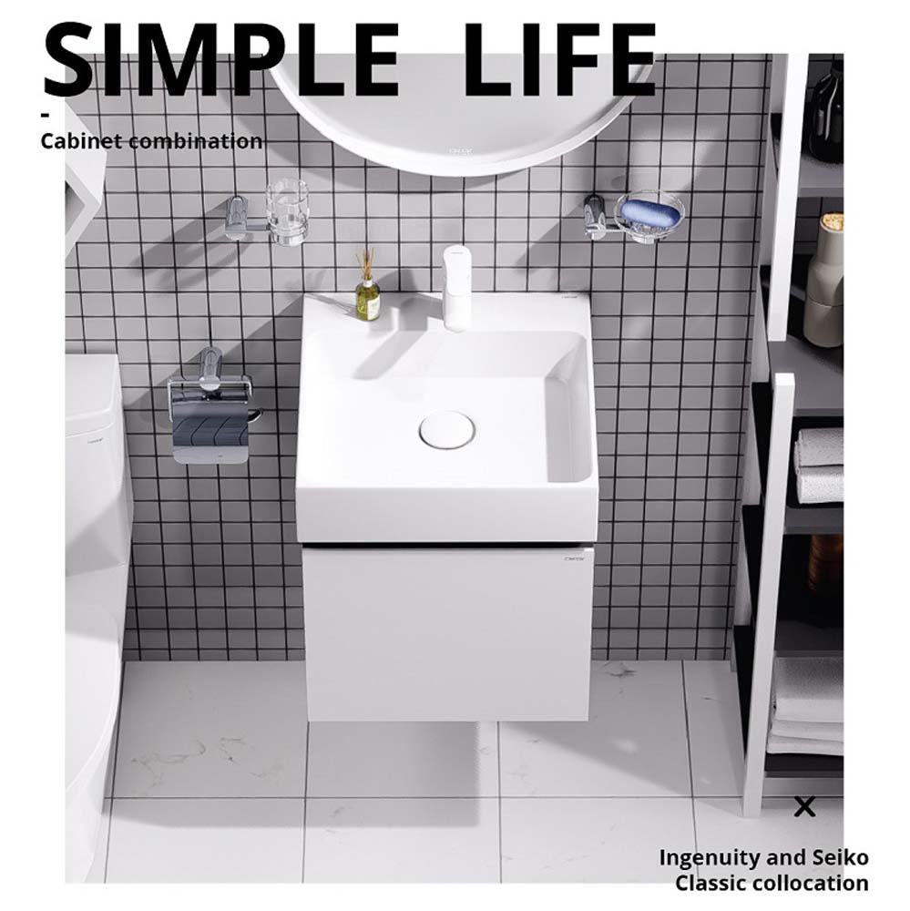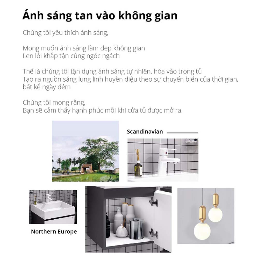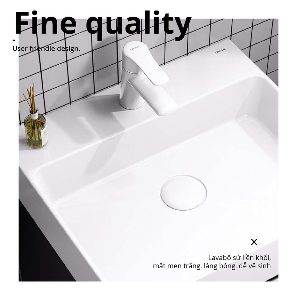 - Chất liệu: sứ vệ sinh tráng men NANO (chậu), ván nhựa PVC (tủ)