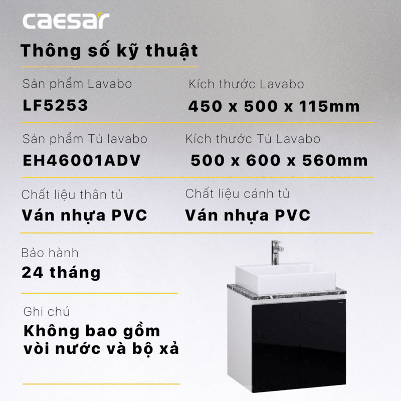 Thông số kĩ thuật Tủ chậu lavabo CAESAR LF5253 EH46001ADV