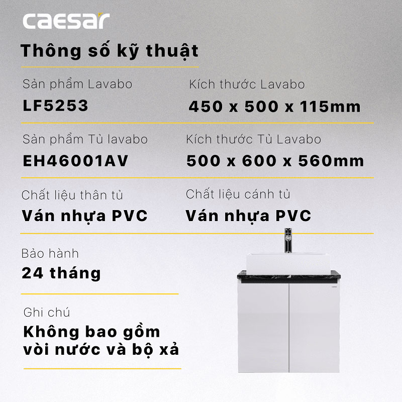 Thông số kĩ thuật Tủ chậu lavabo CAESAR LF5253 EH46001AV