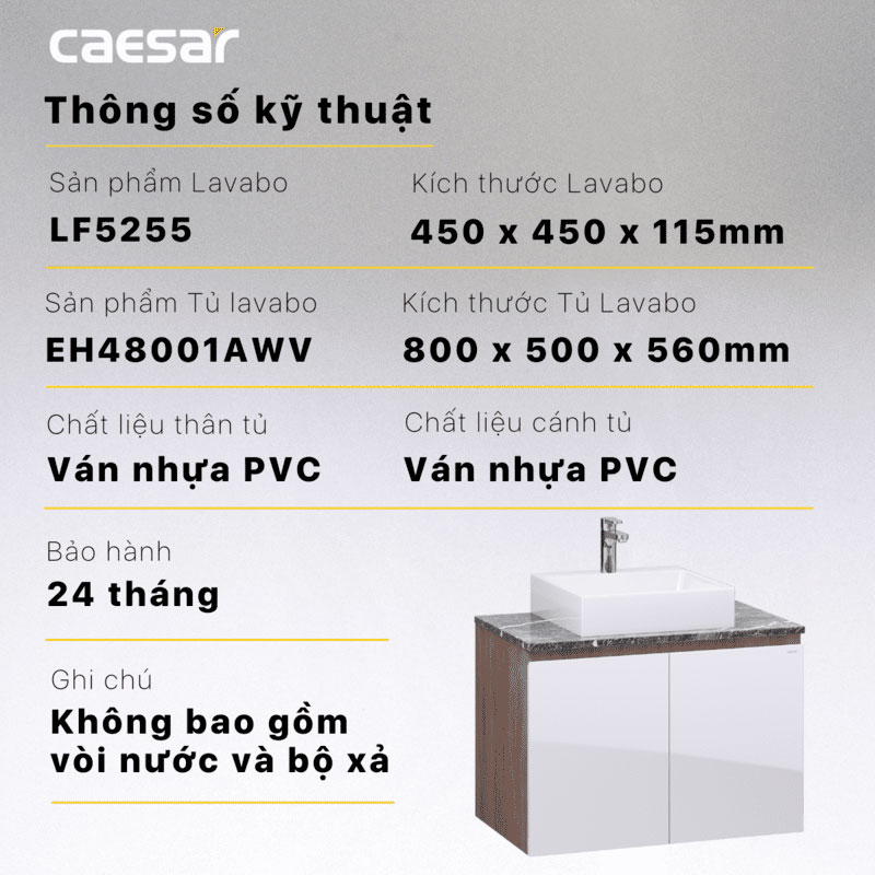 Thông số kĩ thuật Tủ chậu lavabo CAESAR LF5255 EH48001AWV