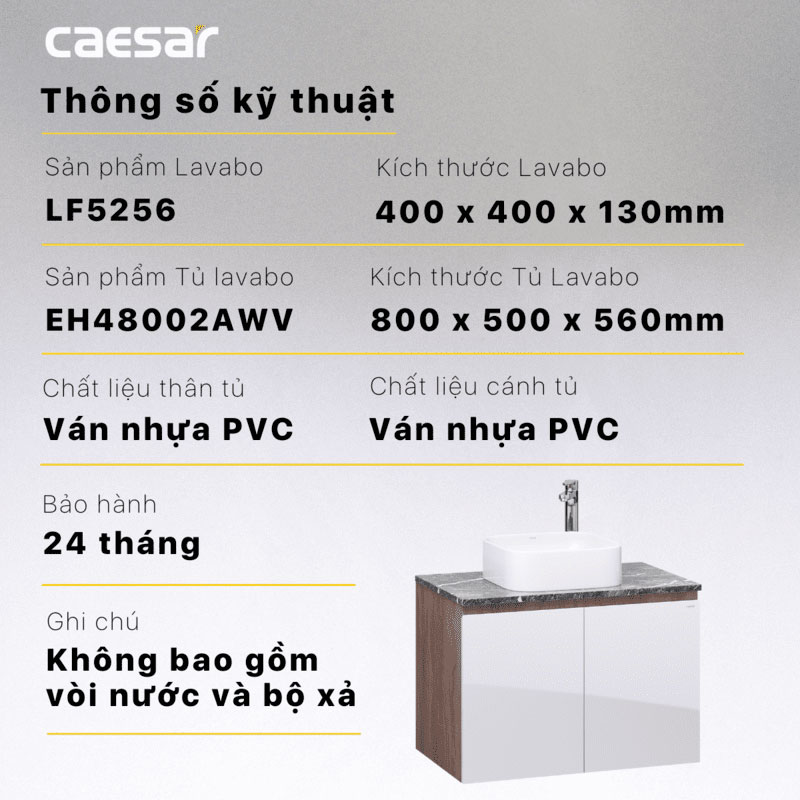 Thông số kĩ thuật Tủ chậu lavabo CAESAR LF5256 EH48002AWV