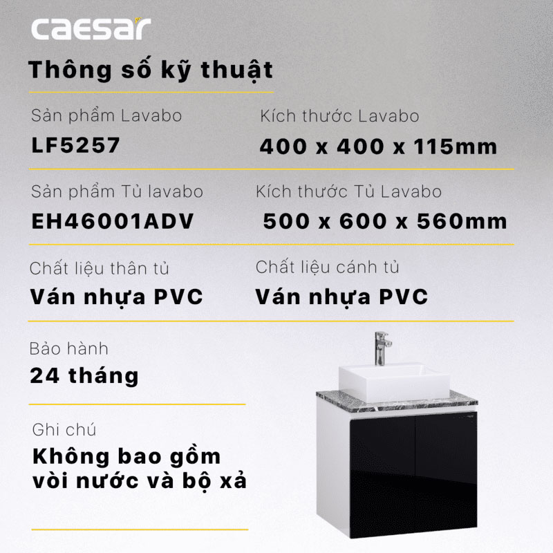 Thông số kĩ thuật Tủ chậu lavabo CAESAR LF5257 EH46001ADV