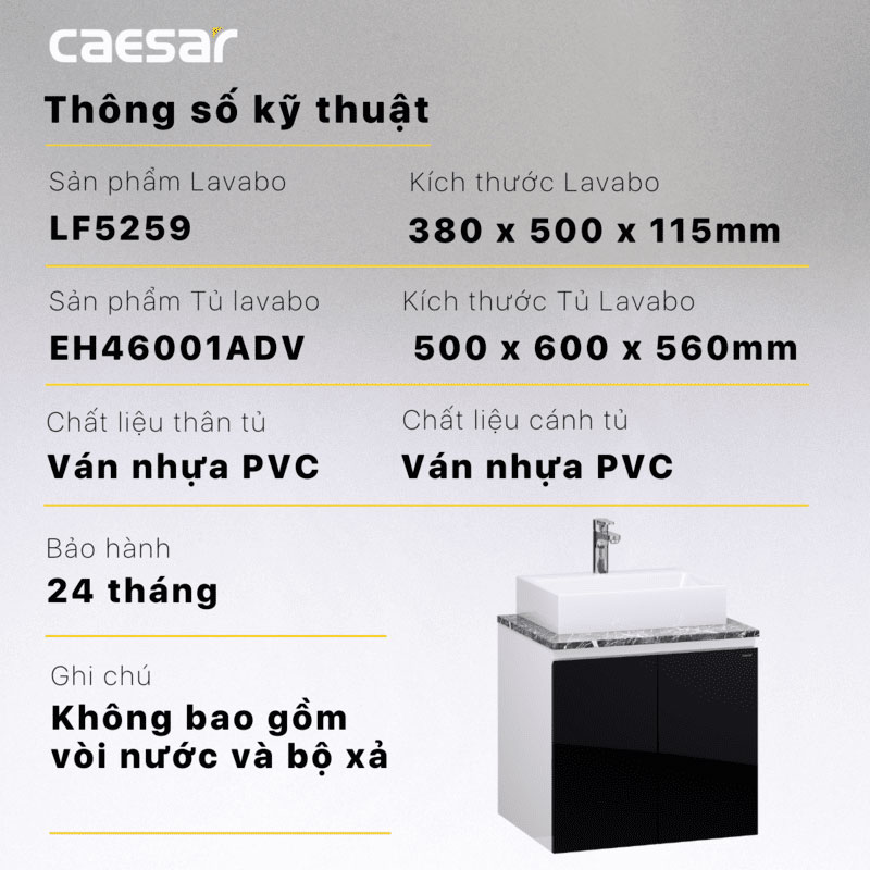 Thông số kĩ thuật Tủ chậu lavabo CAESAR LF5259 EH46001ADV