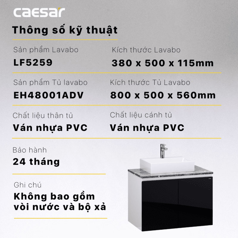Thông số kĩ thuật Tủ chậu lavabo CAESAR LF5259 EH48001ADV