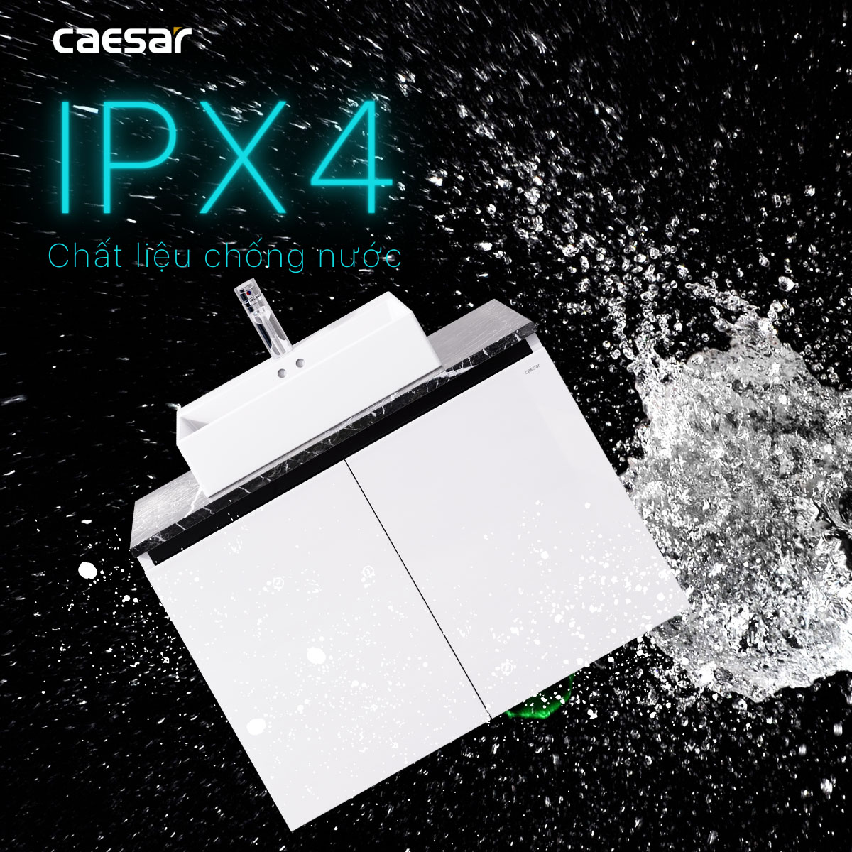 - Tủ lavabo CAESAR LF5263 EH48001AV được thiết kế với nhiều tính năng đáng chú ý và độc đáo. Chậu sứ của tủ được chế tạo từ chất liệu nguyên khối sử dụng công nghệ FINE FIRECLAY, mang lại độ cứng cao và khả năng chống bám cặn, ố vàng. Đồng thời, thân tủ được làm từ vật liệu ván nhựa PVC chống nước tiêu chuẩn IPX4, đảm bảo tủ không bị ảnh hưởng bởi nước và có khả năng chống thấm tốt trong môi trường ẩm ướt.