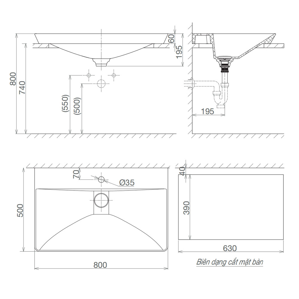 | Kích thước lavabo | 500x800x195mm |