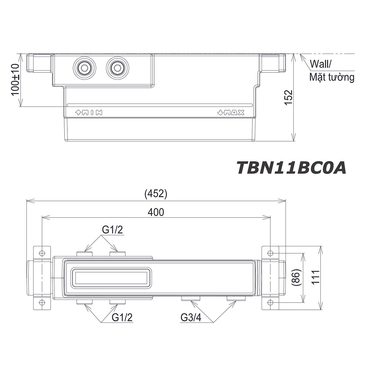 Van âm tường TOTO TBN11BC0A 2 đường nước