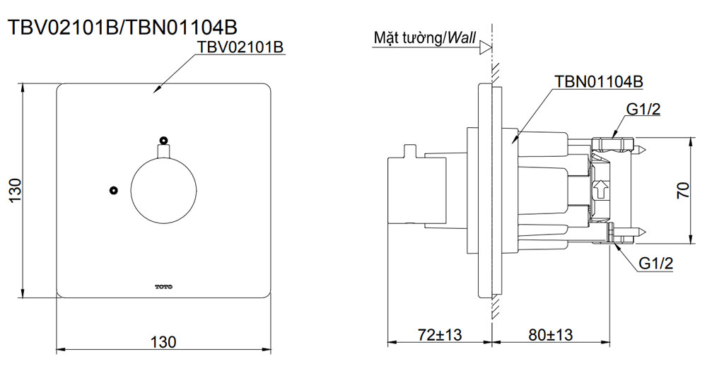 Bản vẽ kỹ thuật Van dừng TOTO TBV02101B TBN01104B sen âm tường