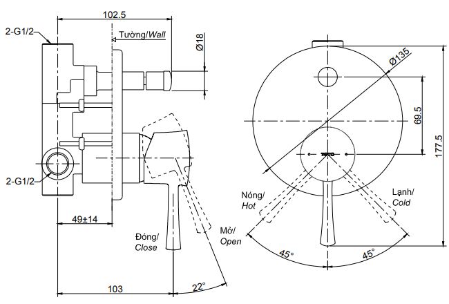 Bản vẽ kỹ thuật Van gật gù TOTO TBS02304B sen âm tường