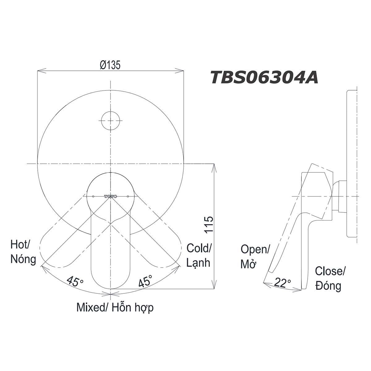 - TBS06304A: Van gật gù điều chỉnh nóng lạnh kèm nút chuyển hướng