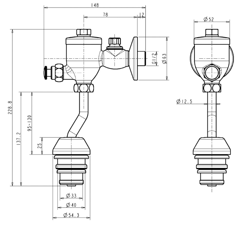 Bản vẽ kĩ thuật Van xả tiểu nam American Standard WF-9802 nhấn