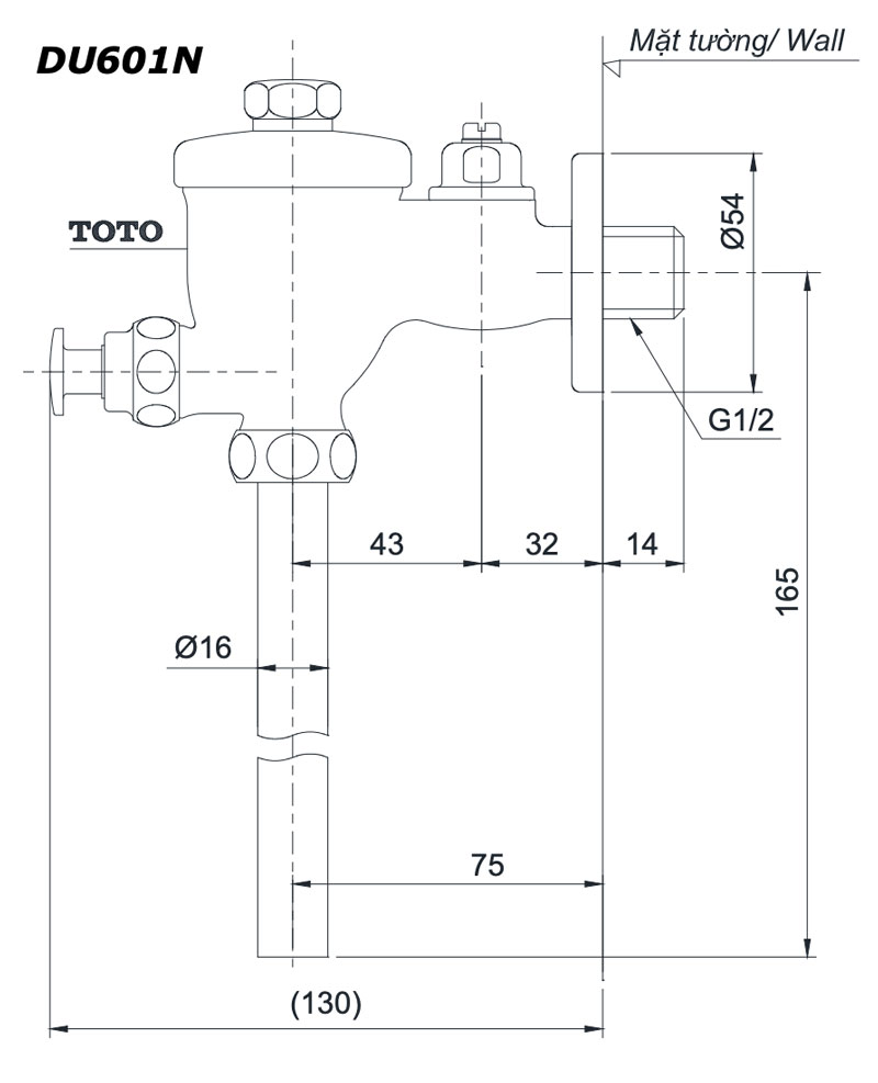 Thông số kĩ thuật Van xả tiểu nam TOTO DU601N dạng nhấn lắp nổi