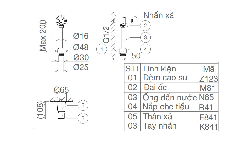 Bản vẽ kĩ thuật Van xả tiểu nam VIGLACERA VG 841 VG 841.1 (VGHX01) dạng nhấn (1)