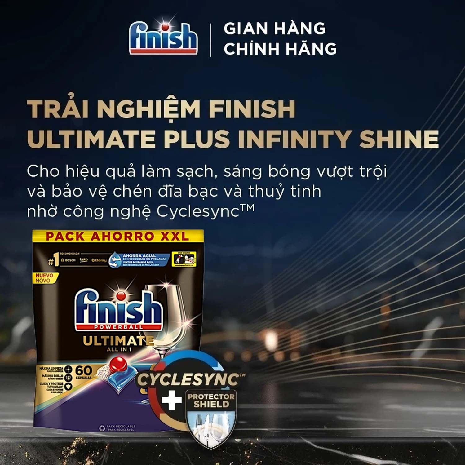Tính năng nổi bật Viên rửa bát Finish Ultimate All In 1 túi 60 viên