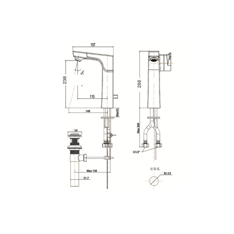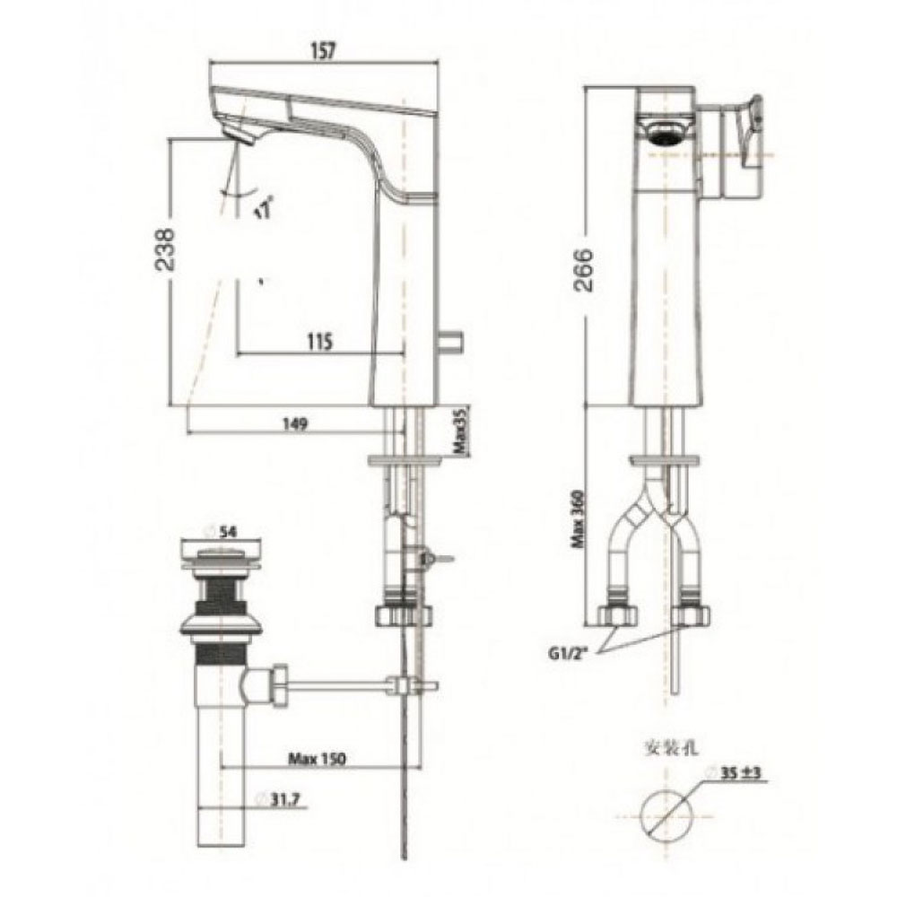 - Bao gồm: thân vòi, ống xả, dây cấp nóng lạnh