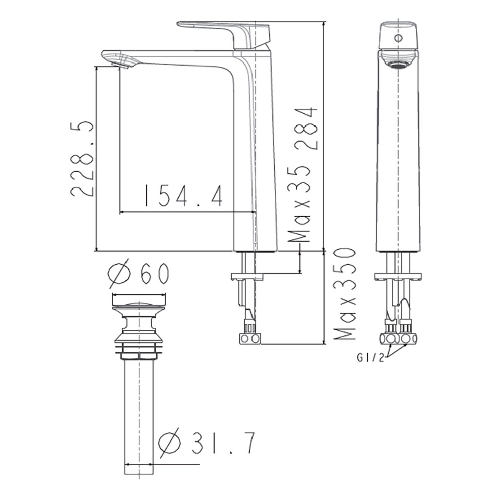 - Bao gồm: thân vòi, ống xả, dây cấp nóng lạnh