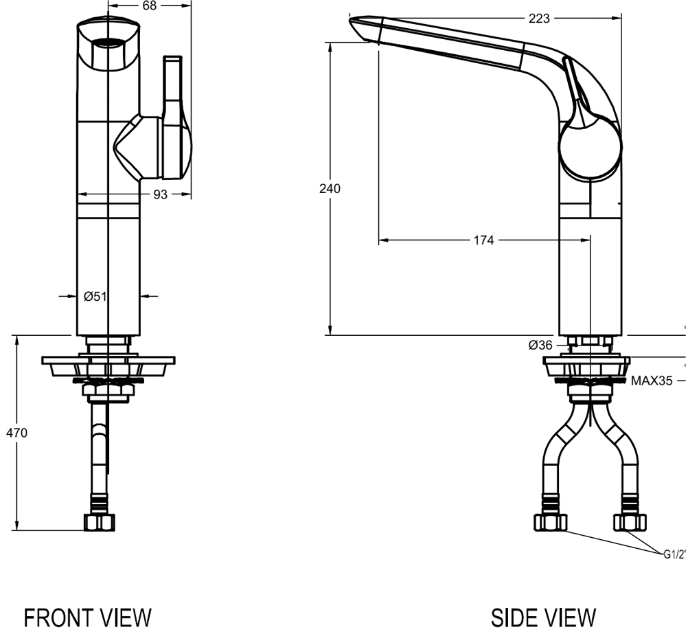 Bản vẽ kỹ thuật Vòi lavabo American Standard WF 6802 dòng IDS cổ cao nóng lạnh