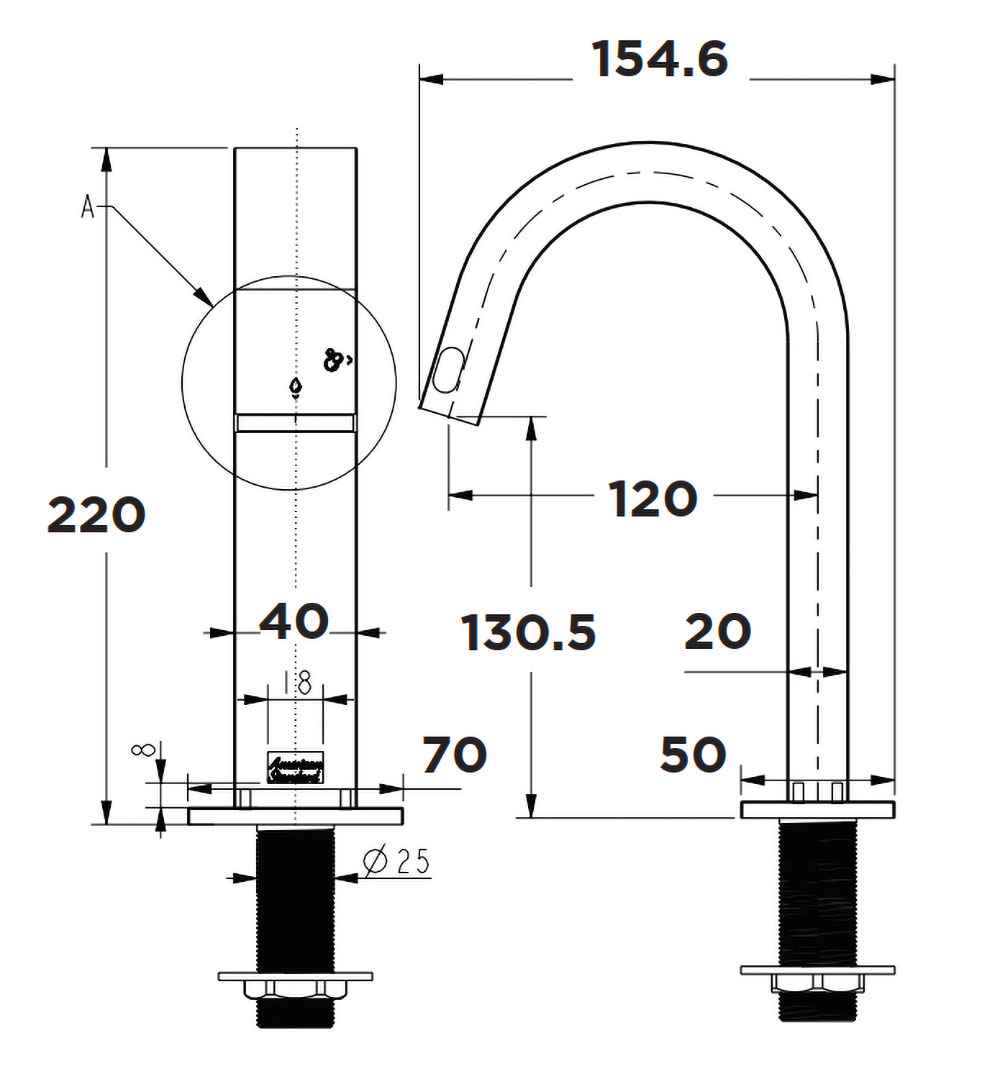 Bản vẽ kỹ thuật Vòi lavabo American Standard WF 8101 cảm ứng kết hợp tạo xà phòng