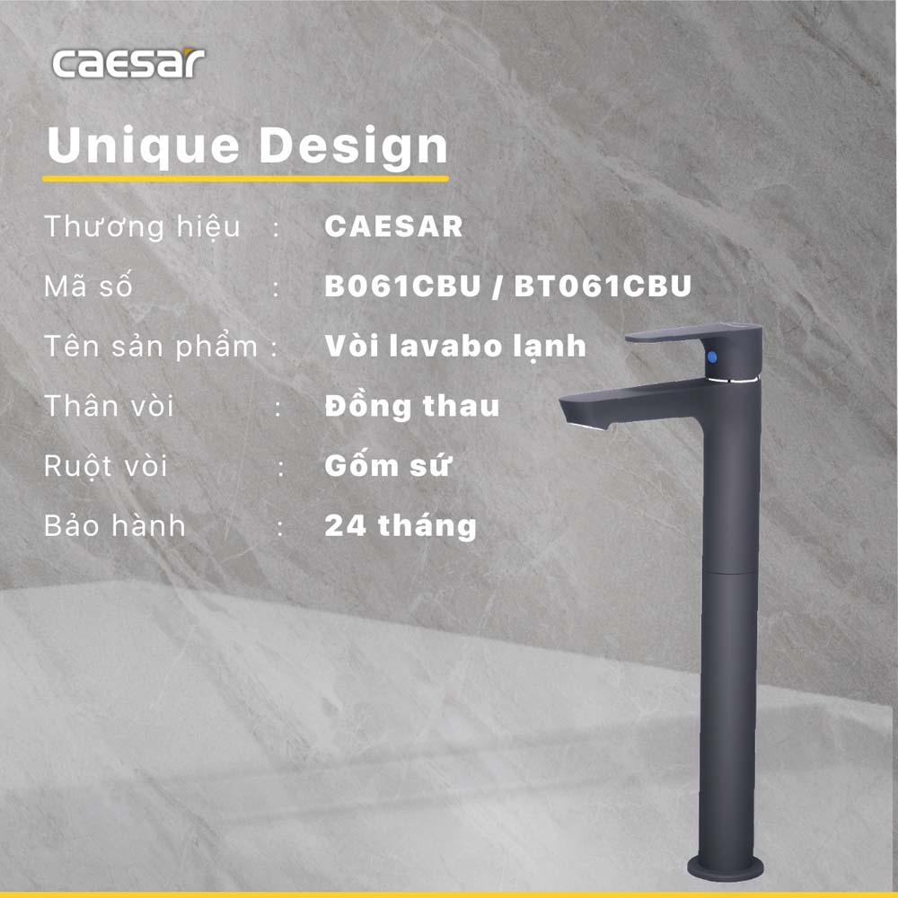 Thông số kĩ thuật Vòi lavabo CAESAR B061CBU cổ cao lạnh